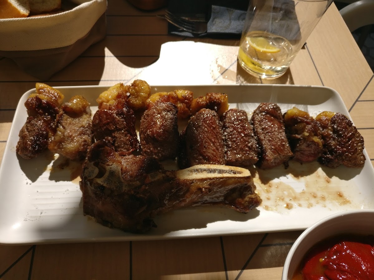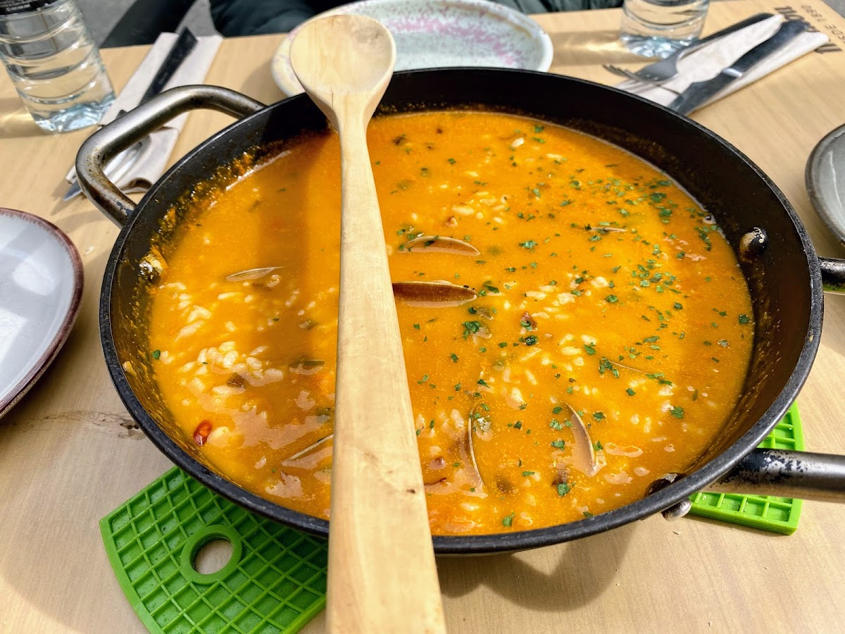 Sat at an outside table with our dog. Service excellent. Staff were understanding when our dog was scared by some fireworks. Ate calamari, ensalada rusa, Patatas bravas and Patatas con Huevos y Jamon. All good, would have marked 5/5 if the calamari had been a bit crispier. These 4 dishes were too much for two of us! Great value €47 including 2 wines and 2 beers. Good choice of wines and beer.